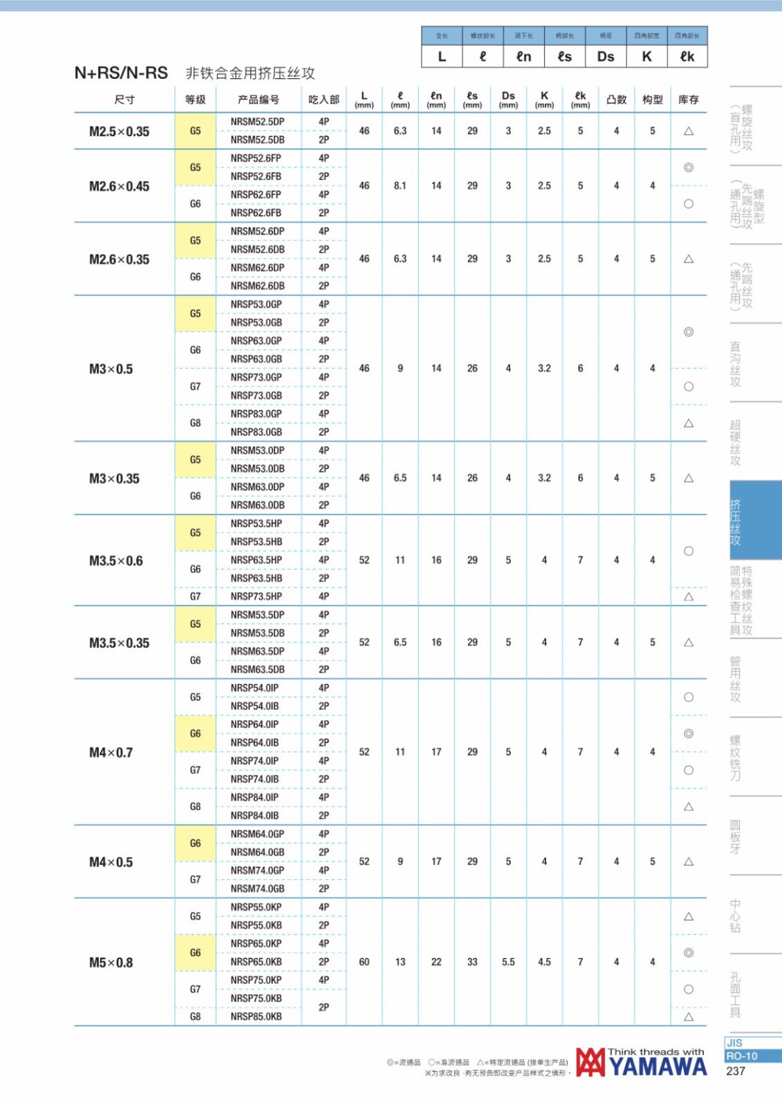 * 適合加工非鐵合金(鋁鑄件、鋁壓鑄件、黃銅等)的擠壓絲攻。