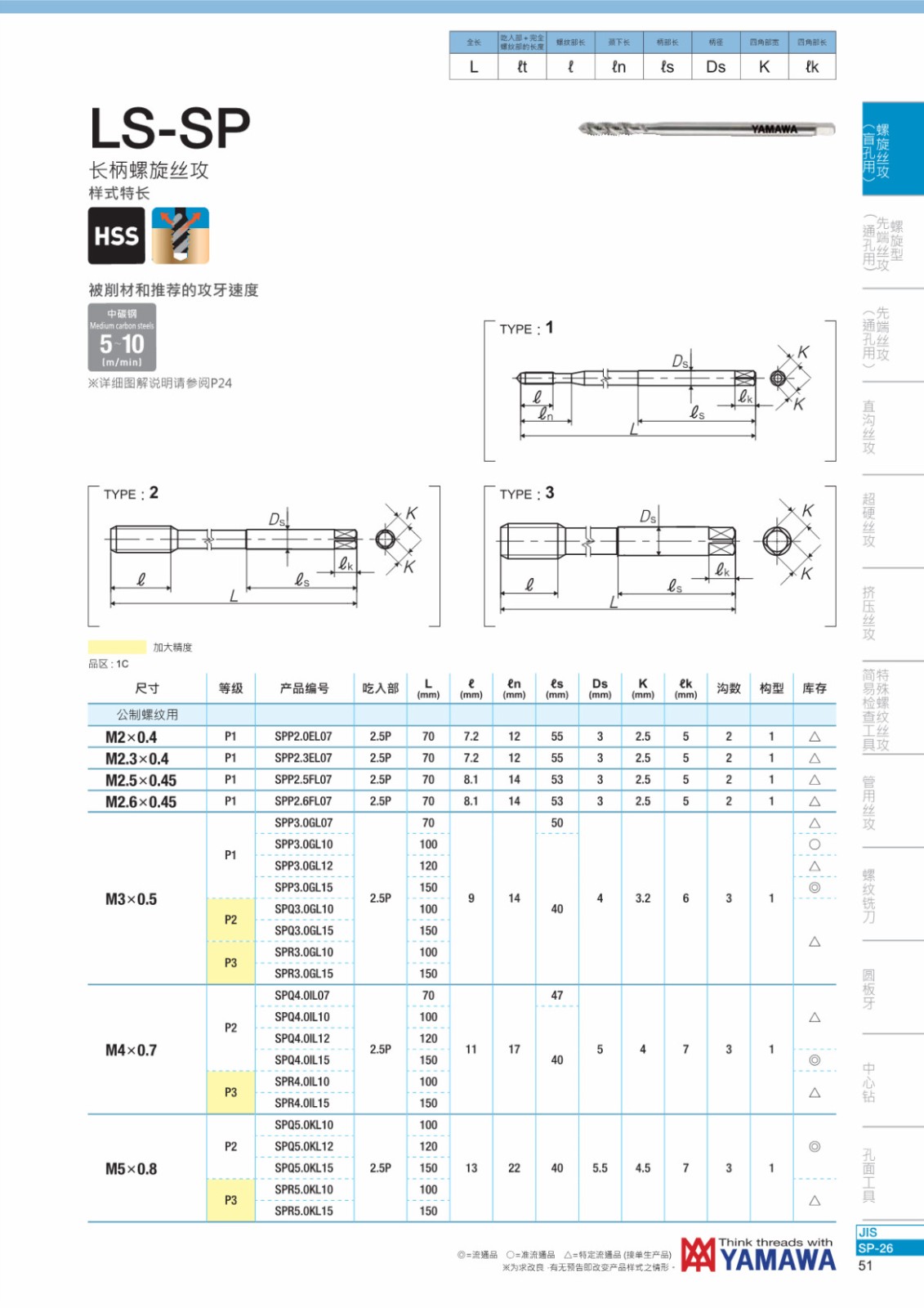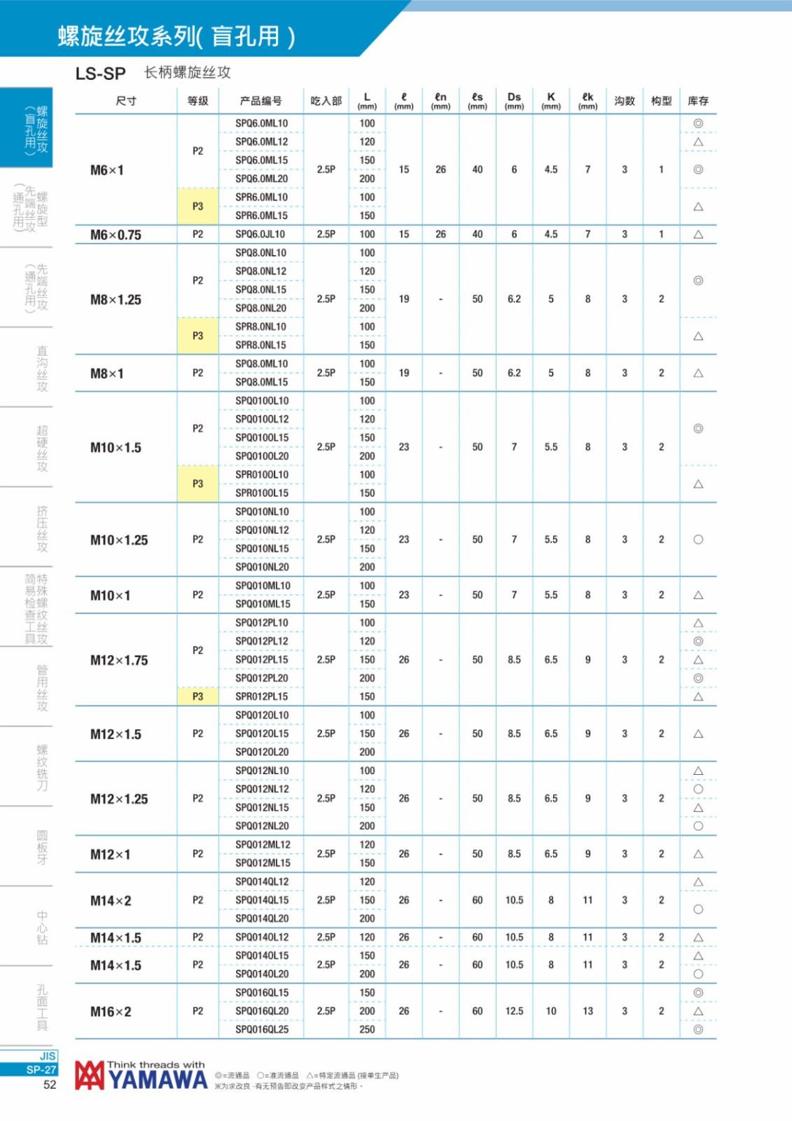 * 加長螺旋絲攻,用于盲孔加工。* 可加工普通絲攻所加工不到的長度位置,或者有臺階段差的產(chǎn)品。* 螺紋加工深度1.5XD以內(nèi)為最佳。