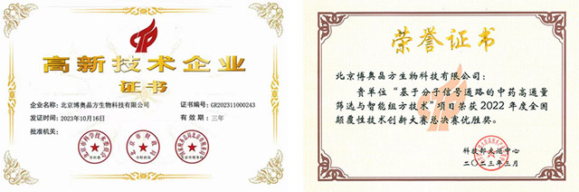 目前已獲得國(guó)家高新技術(shù)企業(yè)、創(chuàng)新型中小企業(yè)、科技型中小企業(yè)、雙軟認(rèn)證企業(yè)、AAA級(jí)信用企業(yè)、博士后工作站等資質(zhì)。并獲得科技部2022年全國(guó)顛覆性技術(shù)創(chuàng)新大賽總決賽最高獎(jiǎng),入選中華中醫(yī)藥學(xué)會(huì)2022年度“中醫(yī)藥十大學(xué)術(shù)進(jìn)展”。具有發(fā)明專利21項(xiàng),軟件著作權(quán)21項(xiàng)。