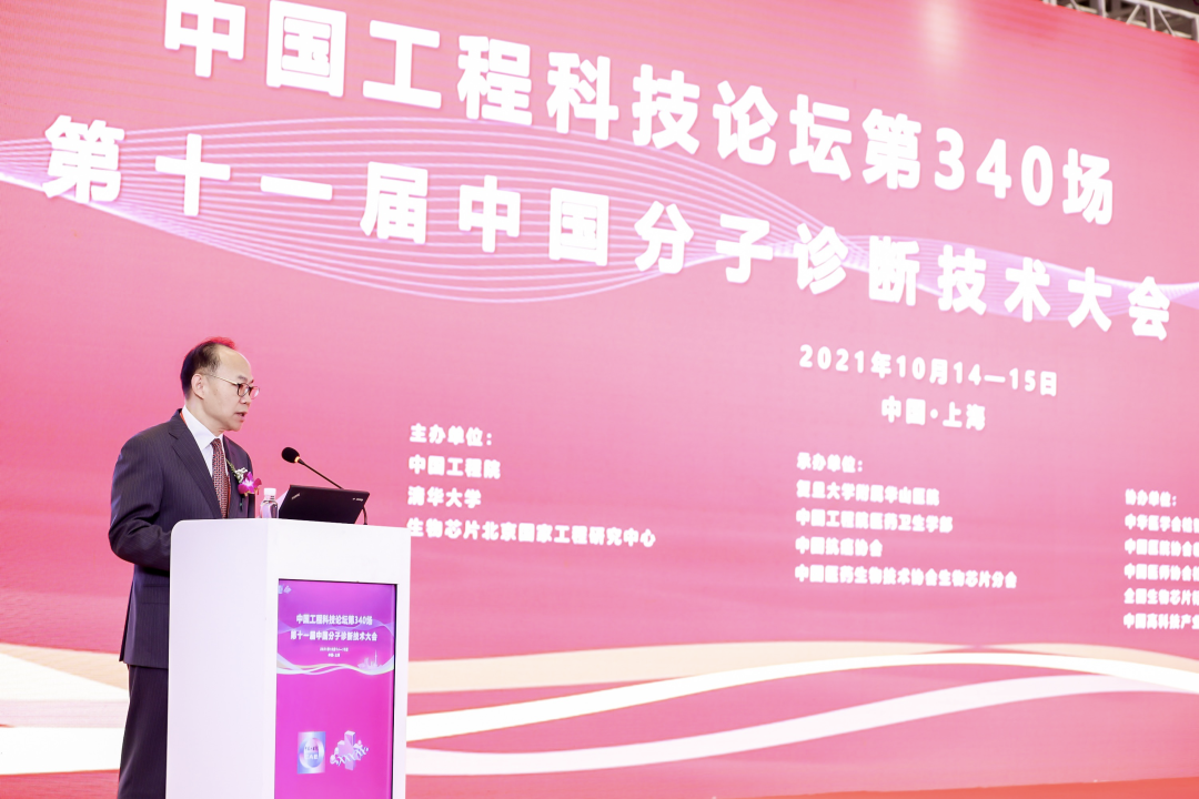 2021年10月14日,“中國工程科技論壇第340場第十一屆中國分子診斷技術(shù)大會”在上海市盛大開幕。會議由中國工程院、清華大學(xué)、生物芯片北京國家工程研究中心主辦,復(fù)旦大學(xué)附屬華山醫(yī)院、中國工程院醫(yī)藥衛(wèi)生學(xué)部、中國抗癌協(xié)會、中國醫(yī)藥生物技術(shù)協(xié)會生物芯片分會承辦,中華醫(yī)學(xué)會檢驗醫(yī)學(xué)分會、中國醫(yī)師協(xié)會檢驗醫(yī)師分會、中國醫(yī)院協(xié)會臨床檢驗管理專業(yè)委員會、全國生物芯片標(biāo)準(zhǔn)化技術(shù)委員會、中國高科技產(chǎn)業(yè)化研究會協(xié)辦。