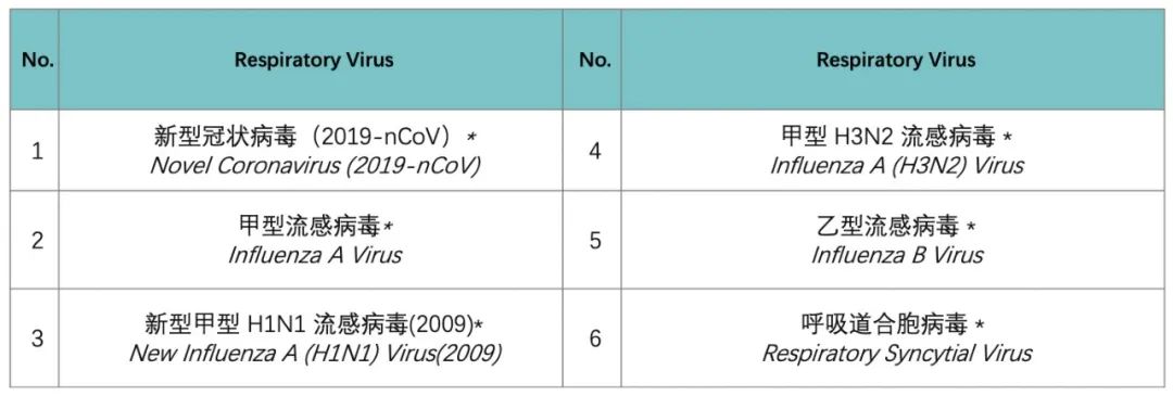 六項呼吸道病毒核酸檢測試劑盒 (恒溫擴增芯片法)檢測指標
