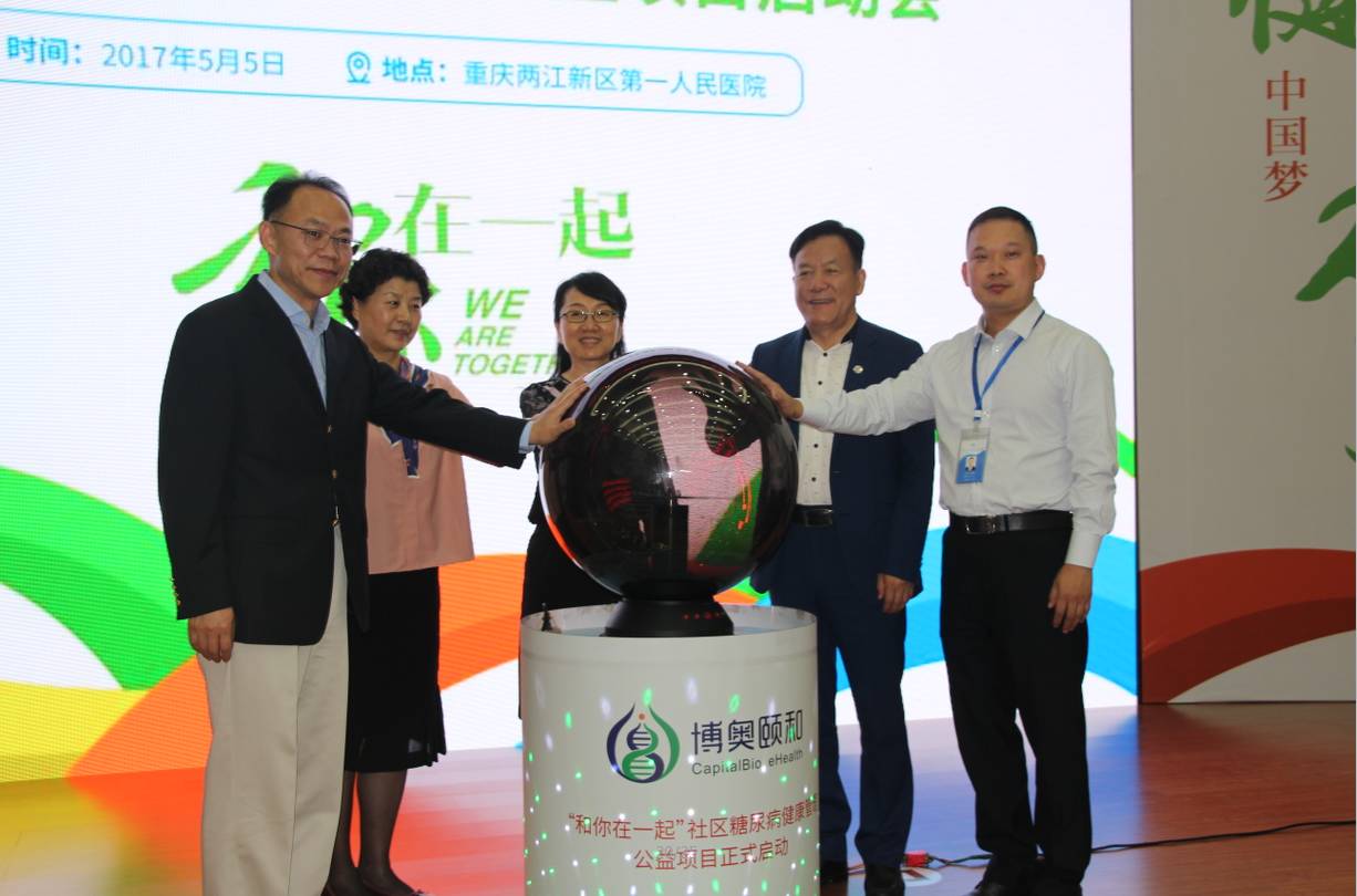 2017年5月5日,重慶市兩江新區(qū)“和你在一起” 社區(qū)糖尿病健康管理公益項目成功啟動。該項目是在重慶市政府及兩江新區(qū)區(qū)政府的支持下,由重慶博奧頤和類經(jīng)堂健康管理有限公司攜手重慶醫(yī)科大學(xué)附屬第一醫(yī)院金山分院、重慶兩江新區(qū)第一人民醫(yī)院、重慶兩江新區(qū)第二人民醫(yī)院共同推進(jìn)。
