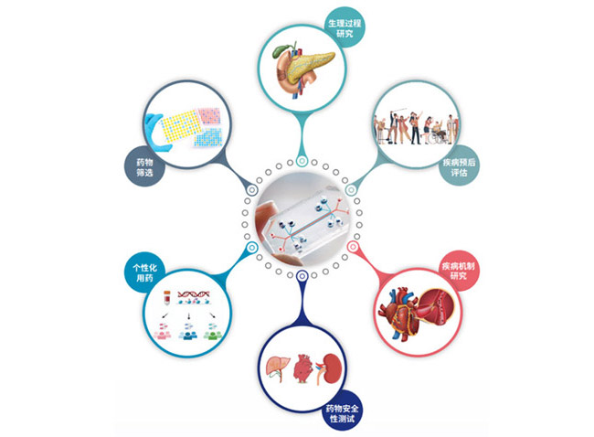 以微流控芯片為核心的器官芯片,具有多個(gè)模擬人體組織和器官環(huán)境的細(xì)胞培養(yǎng)分區(qū),用于在體外模擬包括有多種活體細(xì)胞、功能組織界面、生物流體和機(jī)械力刺激等復(fù)雜因素的組織器官微環(huán)境,反映人體組織器官的主要結(jié)構(gòu)和功能特征。目前已構(gòu)建肝臟芯片、小腸芯片、血管分支芯片、腫瘤免疫芯片等,未來可廣泛用于生理過程和疾病機(jī)制研究,用于藥物篩選、個(gè)性化用藥和藥物的安全性測(cè)試,也可幫助實(shí)現(xiàn)疾病的預(yù)后評(píng)估。